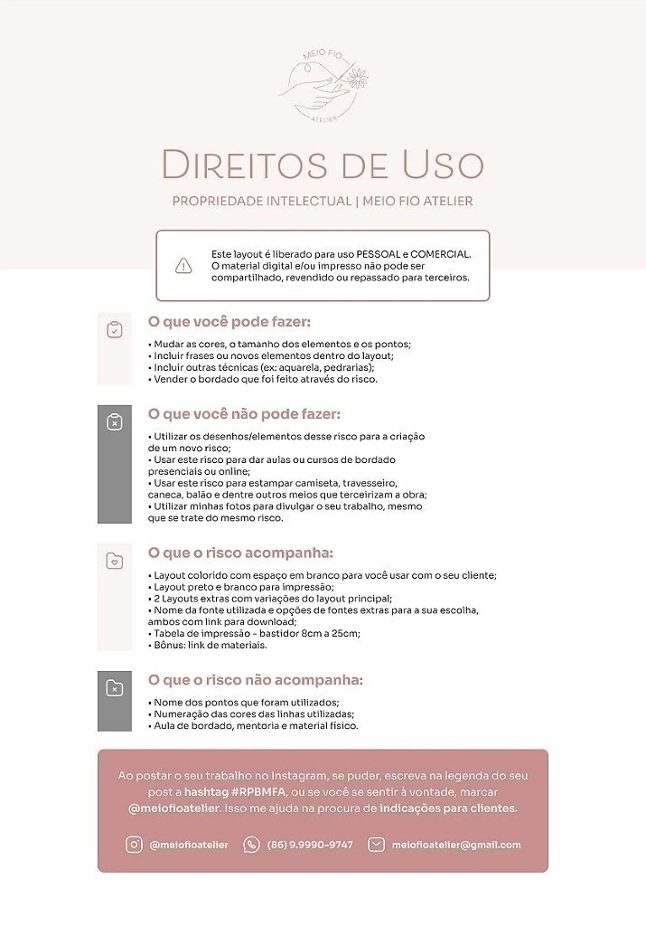 O serviço de Edição Personalizada oferece 1 folha no formato A4 com o risco para bordado em preto e branco, incluindo o nome, frase e/ou data de sua escolha, pronto para impressão. O documento será enviado como anexo em PDF ao final do e-mail. Caso prefira não adquirir este serviço, você poderá personalizar o nome por conta própria, seguindo as orientações disponibilizadas no e-mail.